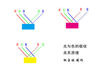 根据科学家对于自然白光的研究发现,所有的光线都可以用“红绿蓝”三种光线相互叠加而成,并且有这样的规律:“纯红色”+“纯绿色”=“黄色”;“纯红色”+“纯蓝色”=“品红色”;“纯绿色”+“纯蓝色”=“青色”;“纯红色”+“纯绿色””+“纯蓝色”=“白色”。