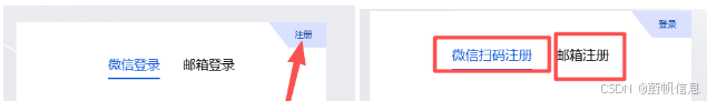 可以选择微信扫码注册或邮箱注册,如果是企业用户建议使用邮箱注册,前期如果不确定使用哪种方式,可以选择最便捷的,注册完成后可以通过随时更换绑定微信或邮箱来更换登录方式。