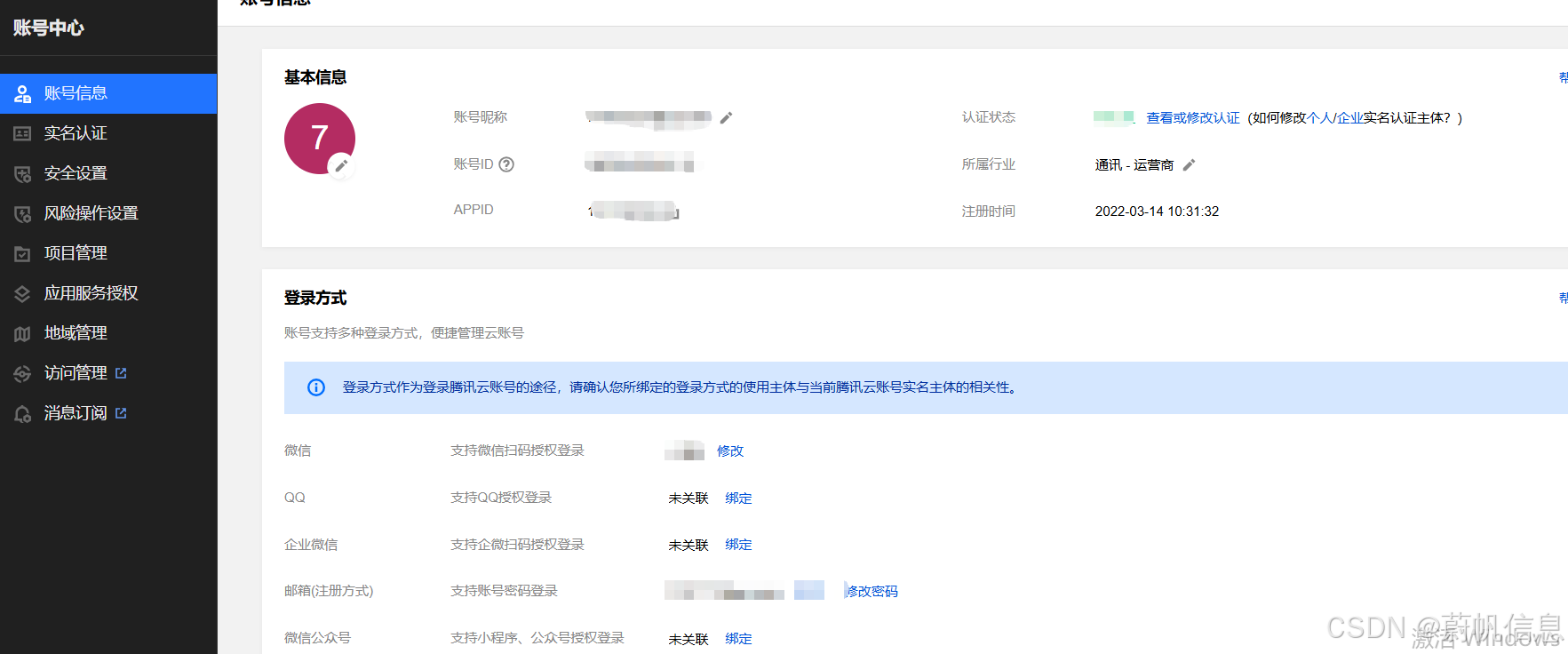 注册腾讯云账号后,必须完成实名认证才能购买云产品、提现现金余额等。
