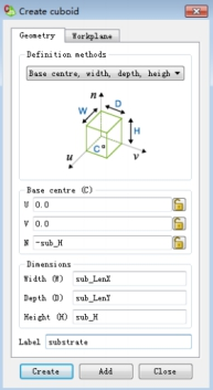 在菜单“Construct”中,选择“Cuboid”,弹出“Create cuboid”对话框,如图3