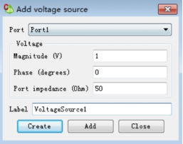 2)激励设置:在“Global”中,选中“Sources”点击鼠标右键选择“Voltage Source”,弹出“Add voltage source”对话框,采用默认设置,点击“Create”。如图9