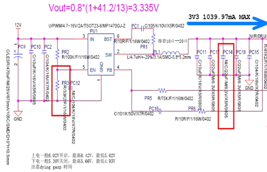 Ø 增加DyingGasp时间有两种路径:其一,降低MP1470的使能电位对应的VIN;其二,提高DyingGasp的触发电位,该触发电位如果改变需与客户确认。