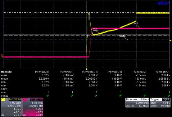 图11 PR3=22kOhm时3.3V-5V上电波形