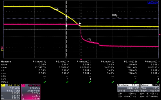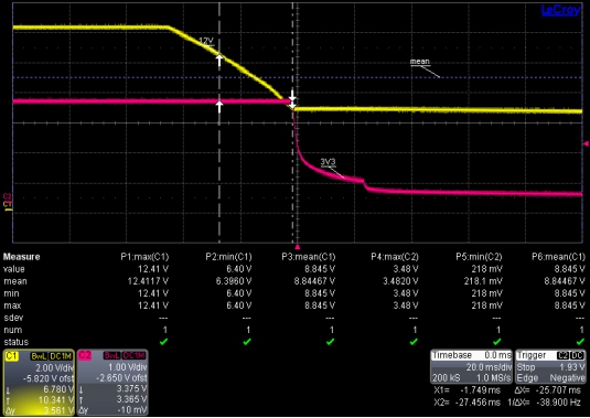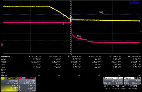 图12 PR3=22kOhm时3.3V-12V掉电波形