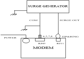 雷击发生器输出10/700uS通讯波浪涌,电压为6KV。浪涌输出端连接到电话线端口,COM端连接到RJ45的4,5,7,8线,并连接到大地。