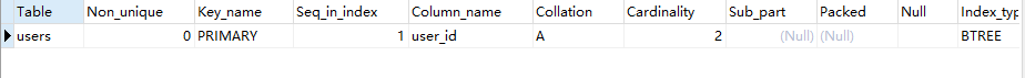 SHOW KEYS from users where KEY_NAME ='PRIMARY'