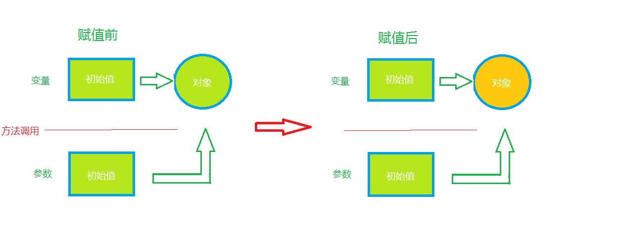 引用类型的变量存储的是对象在堆内存中的地址,传进来的参数是变量的一个副本,所以它们都存储的是对象的地址,我们通过参数访问了对象,修改了对象里的值,由于变量和参数都指向的是同一个对象,所以它们的名字就变得一样,而hashcode一直一样。