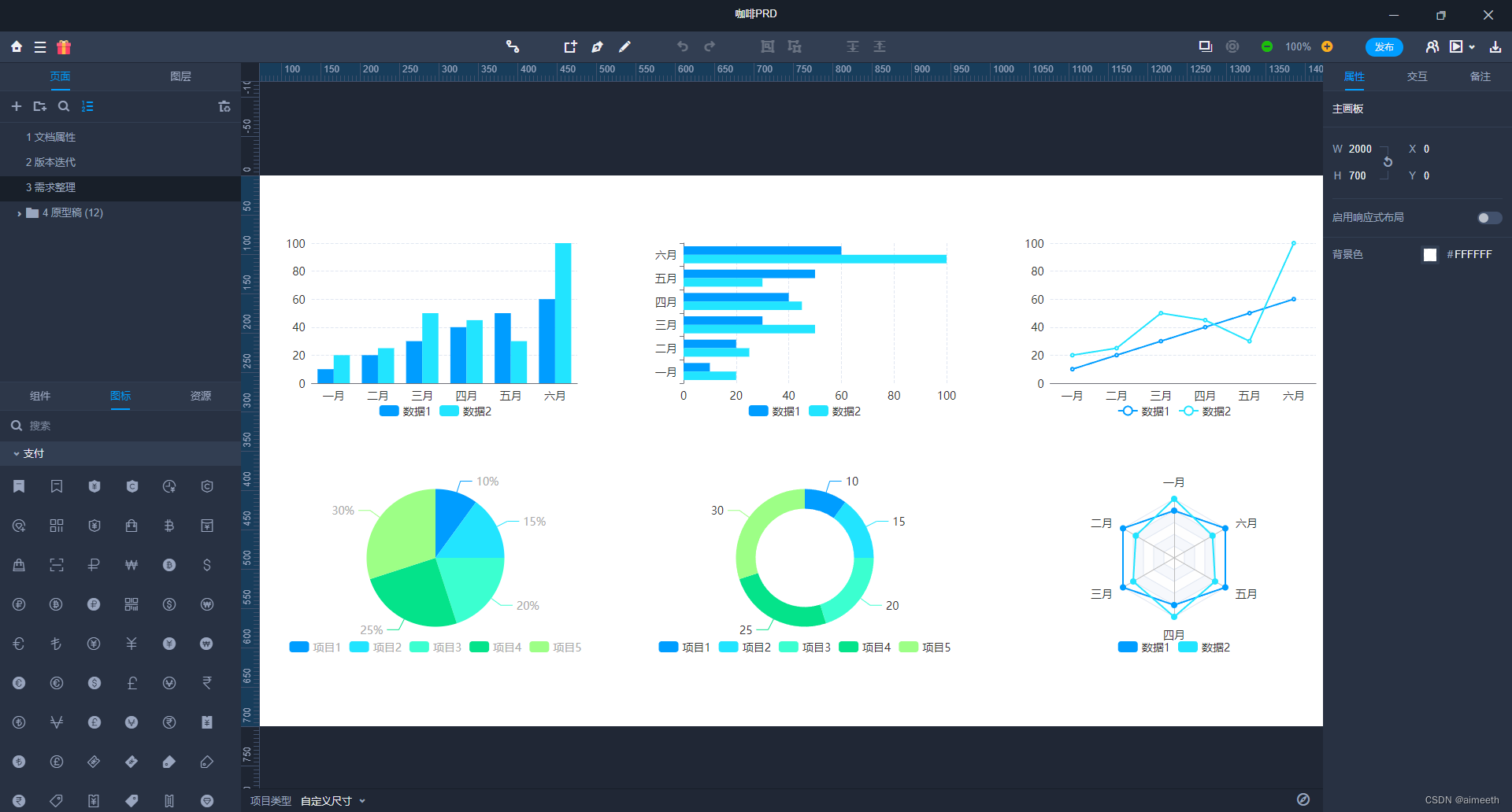 从上图可以看到,作为产品经理的你觉得这样的图表,如果使用其他原型设计工具来做,需要多久?1小时?2小时?我作出6个图表,只用了20秒!是不是很神奇?