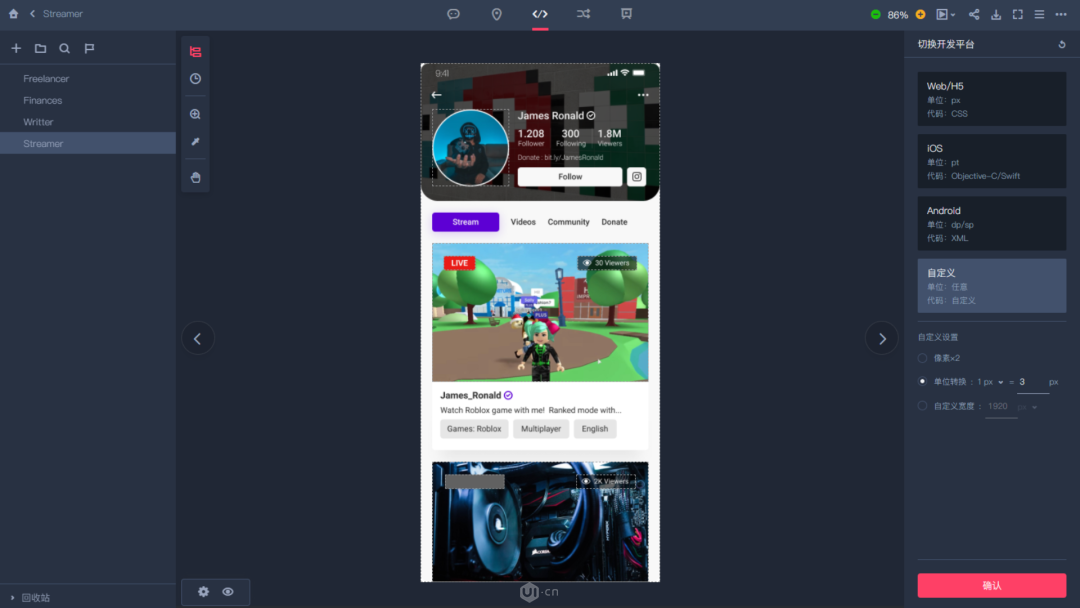 现在,摹客的切图功能预设了iOS、 Android设备的尺寸、倍率、前后缀、格式等参数。无需设计师单独制作不同参数类型的切图,打包交付给前端了。
