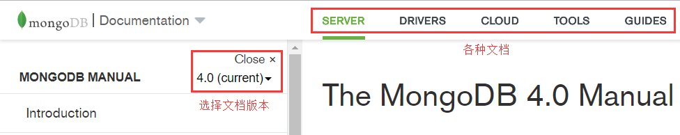 本文展示MongoDB 3.6、4.0的官方Server文档的结构图——一眼可见完整的知识脉络图。不过,MongoDB除了Server的文档外,还有DRIVERS、CLOUD、TOOLS、DUIDES的文档。