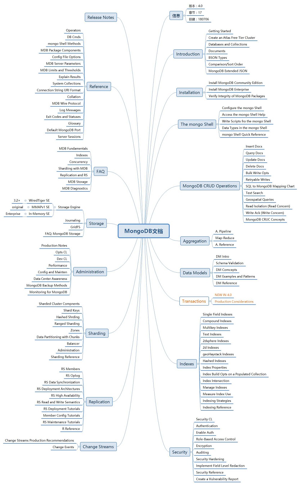 MongoDB 4.0官方Server文档结构图(相册中更大的图):多了Transactions