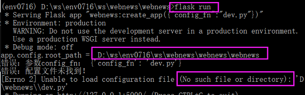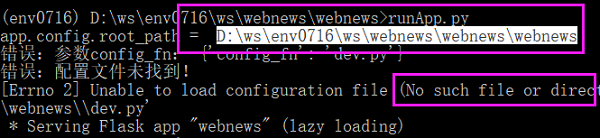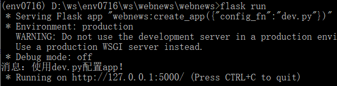 测试:set FLASK_APP=webnews:create_app({"config_fn":"dev.py"}),成功!就是太长了点!这也难怪官文传递的参数为config_filename!懂了!