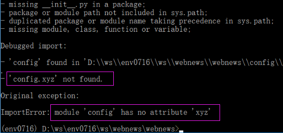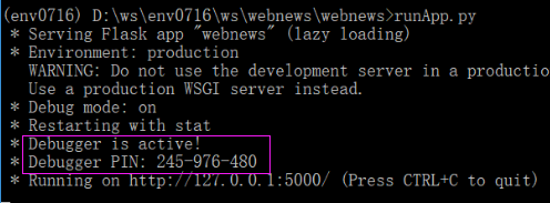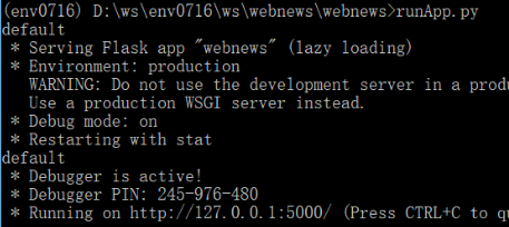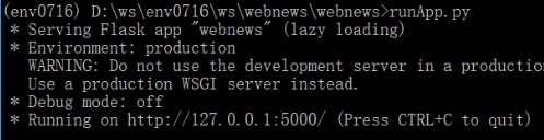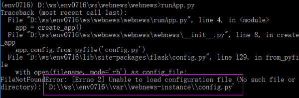 注意,使用上面的runApp.py运行Flask应用时,instance目录不再是项目下的instance目录了。因为程序运行中virtualenv中,此时,instance目录为虚拟环境根目录下的var\\webnews-instance——或许可以配置为其它的,var有点像Linux下的目录名,后面会看到这个错误提示的截图。