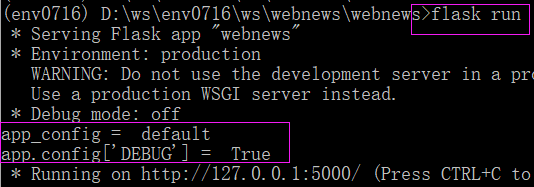 发现一个问题:即便我的默认配置设置了DEBUG为True,但是,在flask run命令运行时却无法开启——设置环境变量FLASK_ENV为development当然是可以的了。