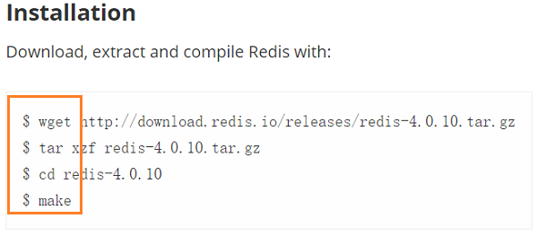 页面往下,可以见到Installation小节,里面有Linux上安装、初步使用Redis的详细命令:四个命令,安装完成!