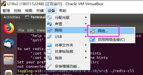 Redis服务运行在虚拟机VirtualBox上的Ubuntu中,Windows主机的程序怎么访问呢?配置虚拟机的网络——自己目前对这个配置不是完全清楚,配置参考了某篇网友的博文!