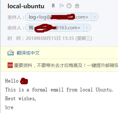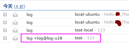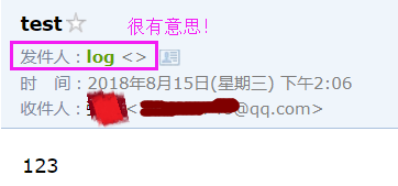 上图紫色方框中的邮件很有意思,内容入下图——发件人就是简单的log,后面居然没有跟着域名!