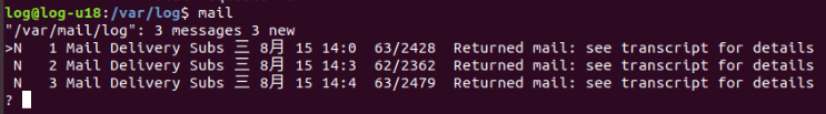 日志文件位于/var/log/目录中,mail.log、mail.err,后者为错误记录文件,查看两个信息、定位问题,很关键。