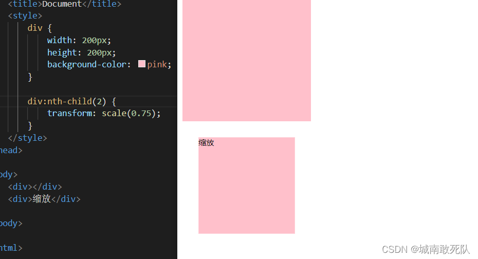 scale最大的优势:可以设置转换中心点缩放,其不会影响其他盒子