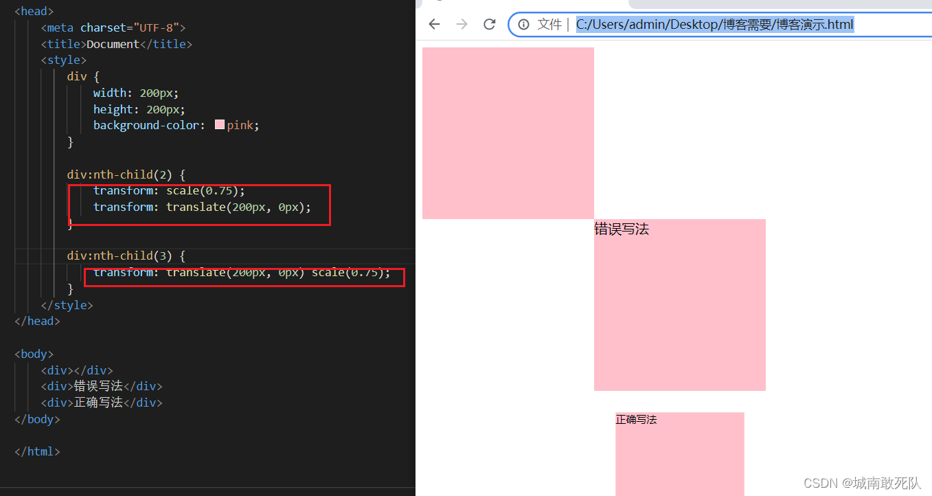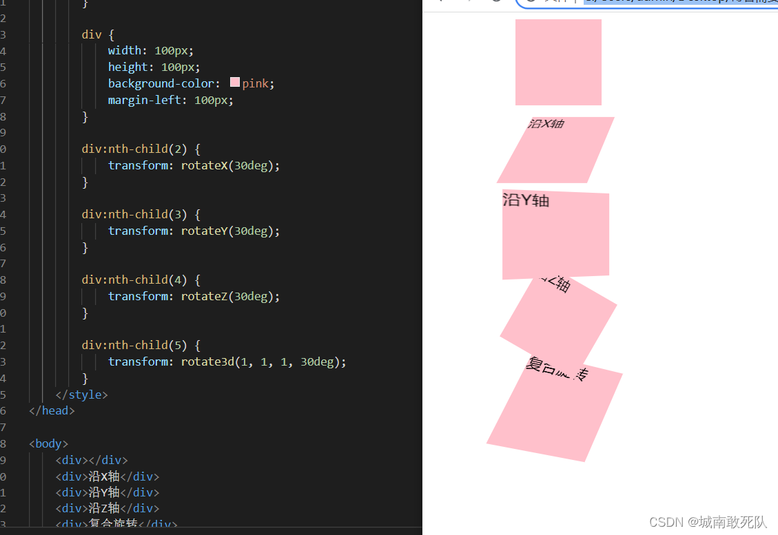 2.书写顺序会想影响转换效果(先旋转会改变坐标轴方向)