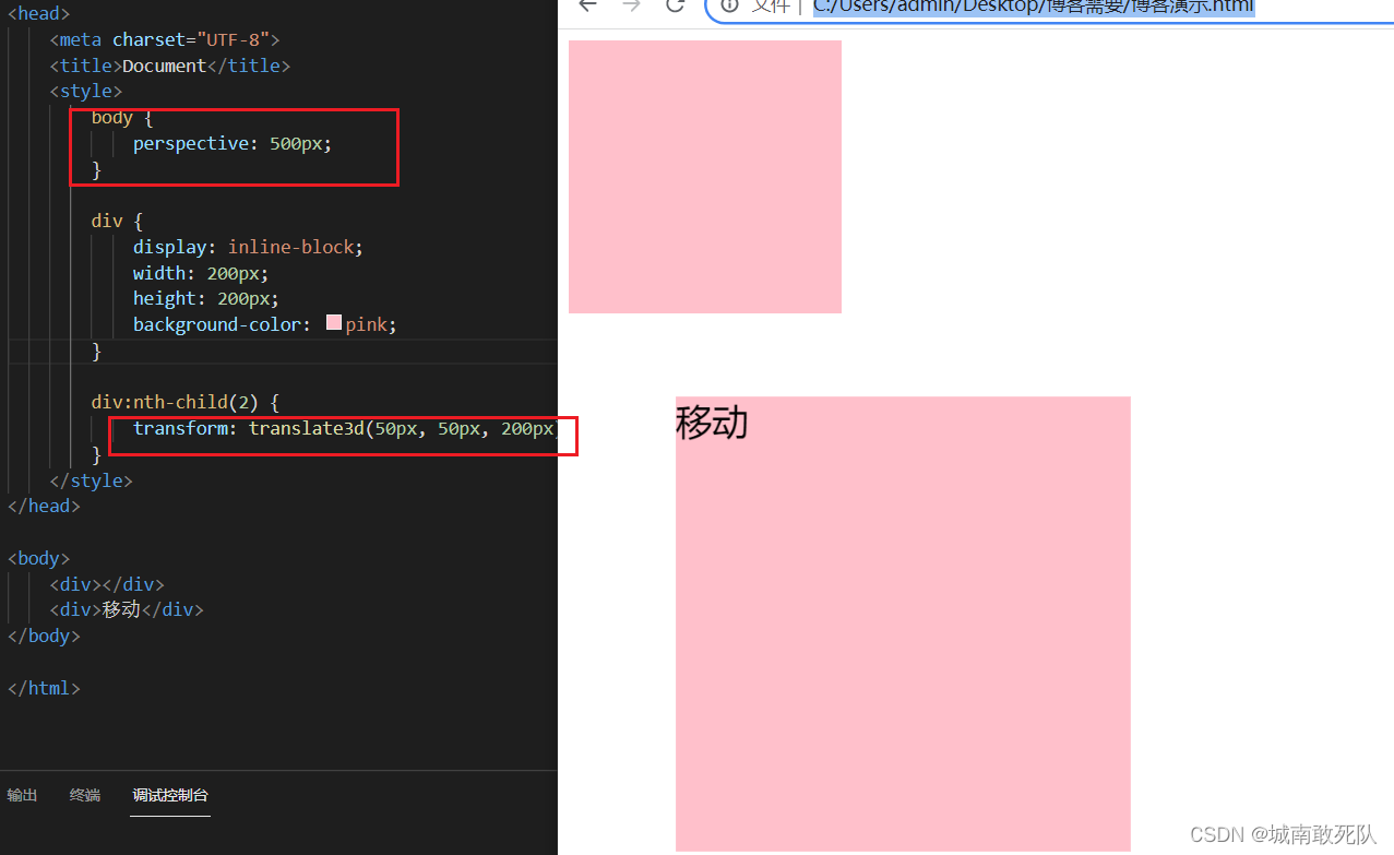我们发现关于Z轴在效果展示中没有表现出来,此时我们就要引入透视
