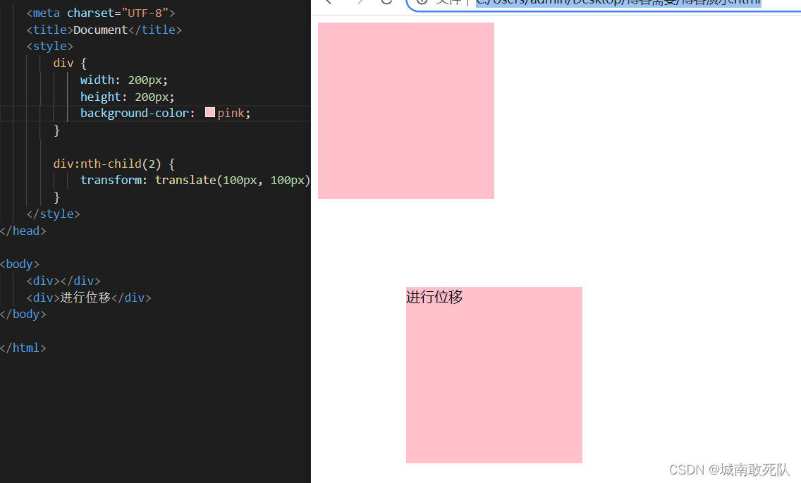 - 定义2D转化中的移动,沿X轴和Y轴移动元素