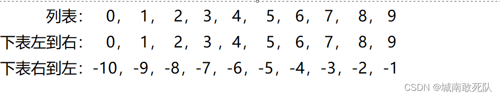 列表是可以通过下标获取元素的,下表从左往右是从 0 开始递增的,从右往左是从 -1 开始递减