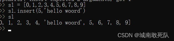 insert(下标,元素)…… 向指定位置添加元素