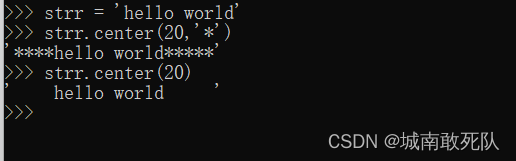 center(with,filling)……在字符串为with(应该大于字符串文本长度)长度下,将字符串居中,并以filling填充空格(可选)