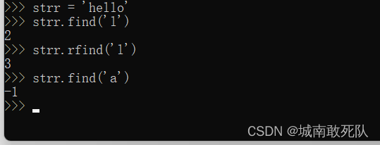 rfind(元素)……逆向寻找指定元素返回第一个元素的位置 若没有则返回 -1