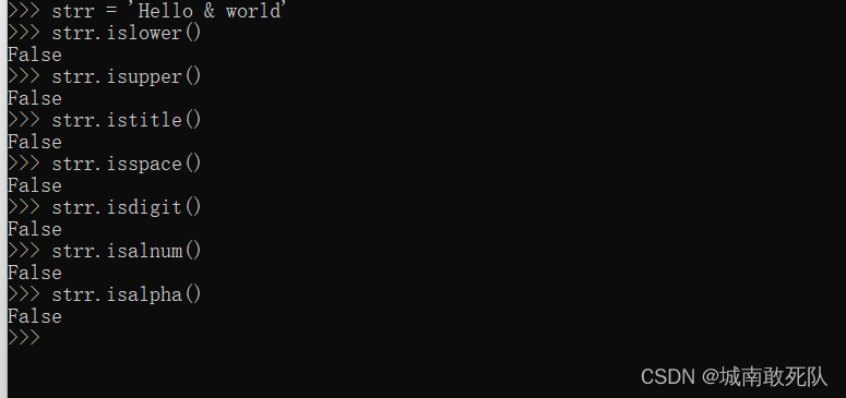 isilower,isupper,istitle,isspace,isdige,isalnum,isalpha