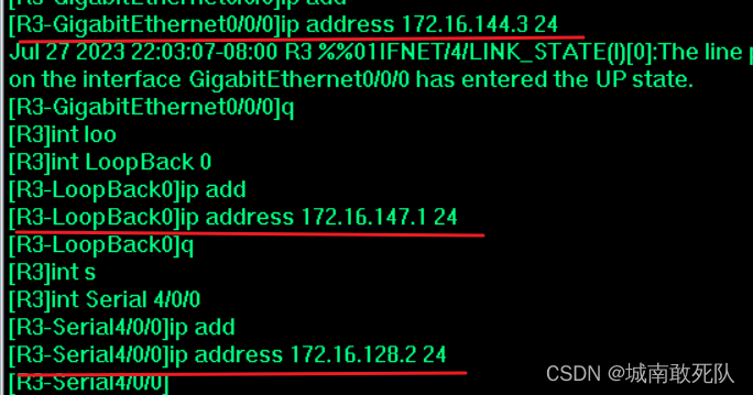 s400:172.16.128.1 24 s401:172.16.129.1 24 s300:172.16.130.1 24 g0:172.16.131.1 24 loop0:8.8.8.8 24 t0:172.16.255.4 24 | ||