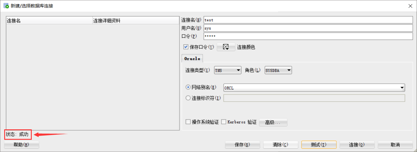 然后测试,显示测试成功后,连接。