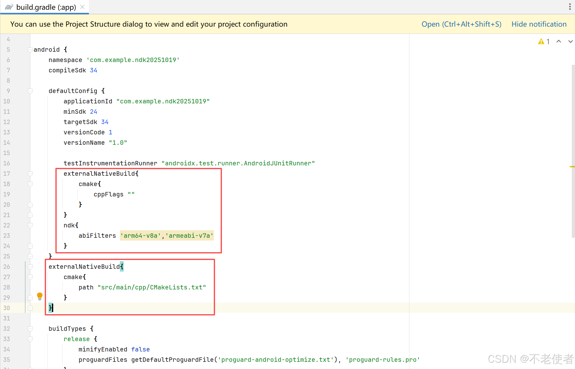 abiFilters 'arm64-v8a','armeabi-v7a'