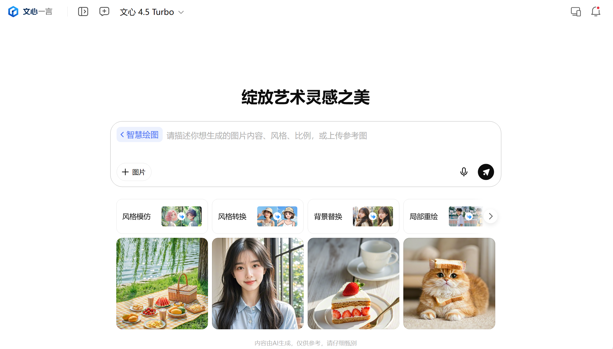 - AI智能修图与编辑:除了基础的文生图和图生图,文心一格也提供了一系列智能编辑功能。例如,它可以智能扩展图片边界,自然地补充画面内容;也能进行局部修改和元素擦除。此外,它还支持上传人像照片生成不同风格的AI写真,满足了大众用户的娱乐需求。