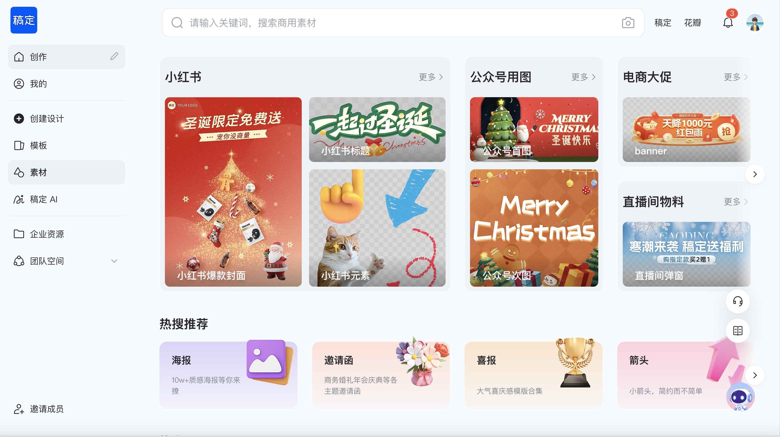 这些痛点不是“学不会设计”的问题,而是“需要用设计解决问题,但没有对应工具”的需求缺口——当一个电商中小卖家想做活动海报,或职场新人要做PPT封面,或教育机构需要招生宣传单时,他们需要的不是“成为设计师”,而是“快速做出能用、好看、合规的设计”。稿定设计的出现,正是针对这一缺口的补位解决方案。