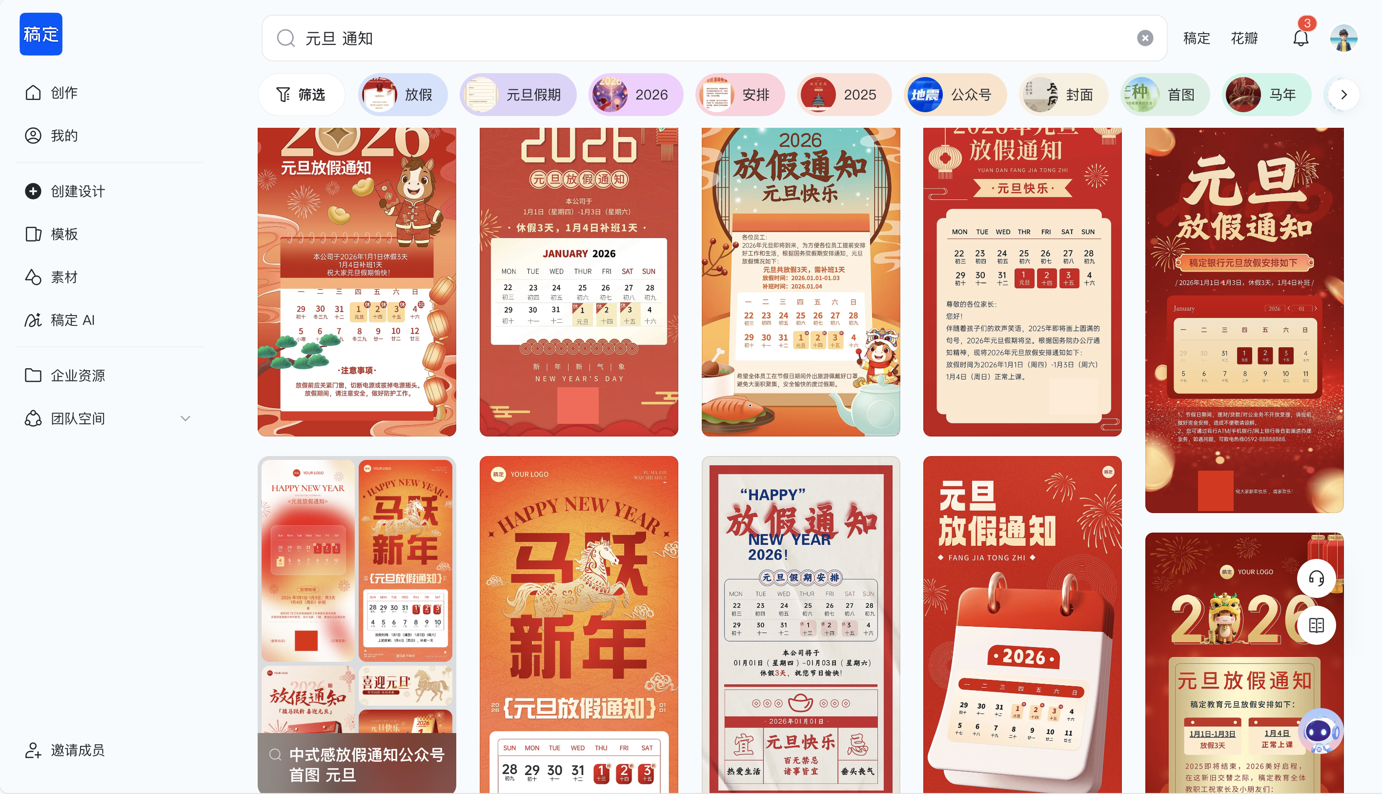 元旦放假通知虽只是一份“功能性文档”,却蕴含着企业对细节的把控与对人的关怀。一份精准、合规、有温度的通知,能让员工感受到企业的专业性,让客户感受到企业的责任感。而稿定设计这类工具的价值,正在于将“专业设计”转化为“普惠服务”——让没有设计能力的企业,也能快速制作出符合需求的通知;让没有时间设计的企业,也能通过模板复用降低成本。