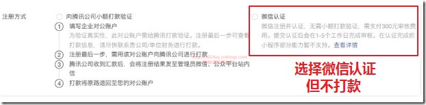 5、接下来是关键的一步,主体类型选择:“企业”,企业类型选择:“个体工商户”,企业名称随意写,营业执照号填写:440301103448669(来源网上),注册方式选择:“微信认证”,无需打款。