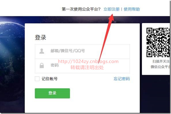 1、访问https://mp.weixin.qq.com微信公众平台,先点击右上角:“立即注册”。