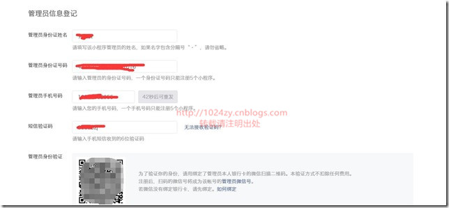 6、下一步:填写自己(管理员)的信息,包括姓名,身份证,手机号,以及需要使用管理员本人的微信进行扫码验证。