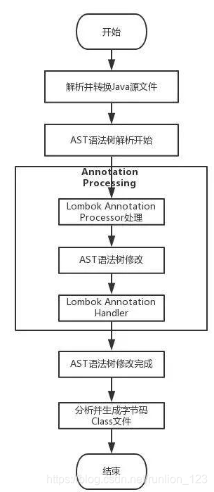上图是 Lombok 处理流程,在Javac 解析成抽象语法树之后(AST), Lombok 根据自己的注解处理器,动态的修改 AST,增加新的节点(所谓代码),最终通过分析和生成字节码。