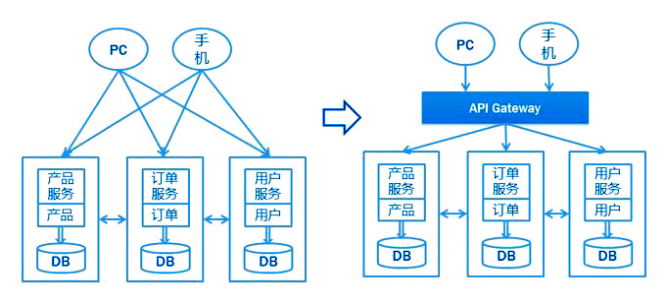 - 单体应用:浏览器发起请求到单体应用所在的机器,应用从数据库查询数据原路返回给浏览器,对于单体应用来说是不需要网关的。