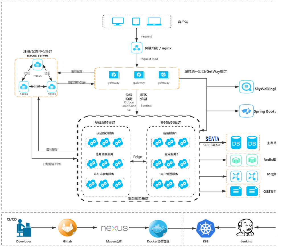 为了保证 Gateway 的高可用性,可以同时启动多个 Gateway 实例进行负载,在 Gateway 的上游使用 Nginx 或者 F5 进行负载转发以达到高可用。