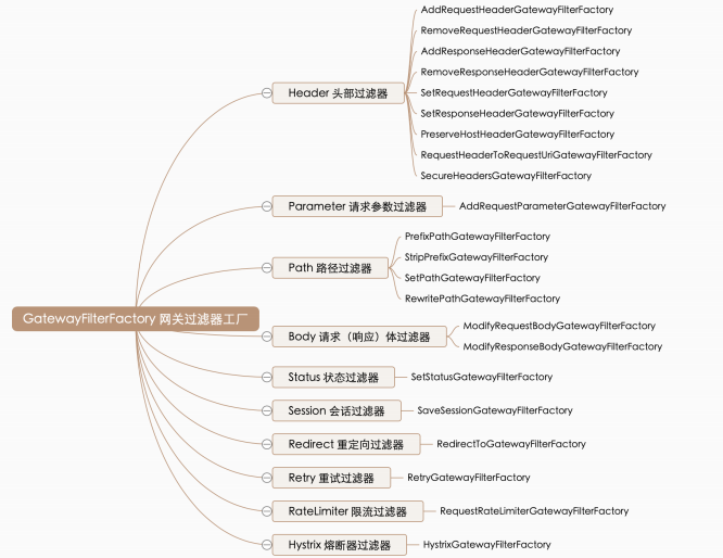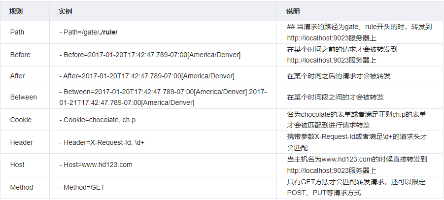 - 网上有一张图总结了 Spring Cloud 内置的几种 Predicate 的实现: