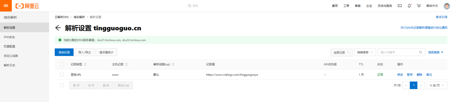 即可实现 http://www.tingguoguo.cn 跳转至 https://www.cnblogs.com/tingguoguoyo