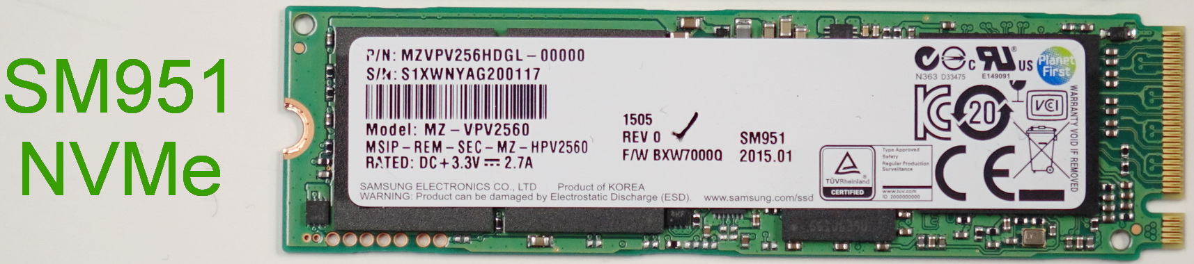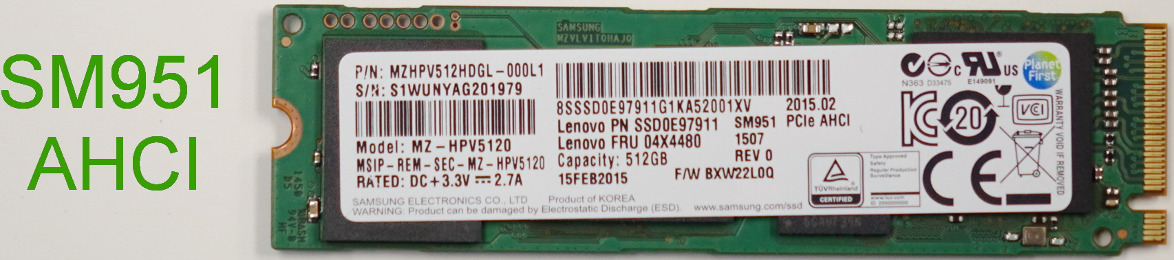 b) 三星 SM951 M.2 接口,PCIe 总线,AHCI 协议