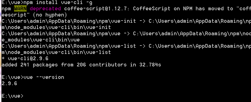 3.环境配置完成后,我们用vue-cli脚手架来进行开发