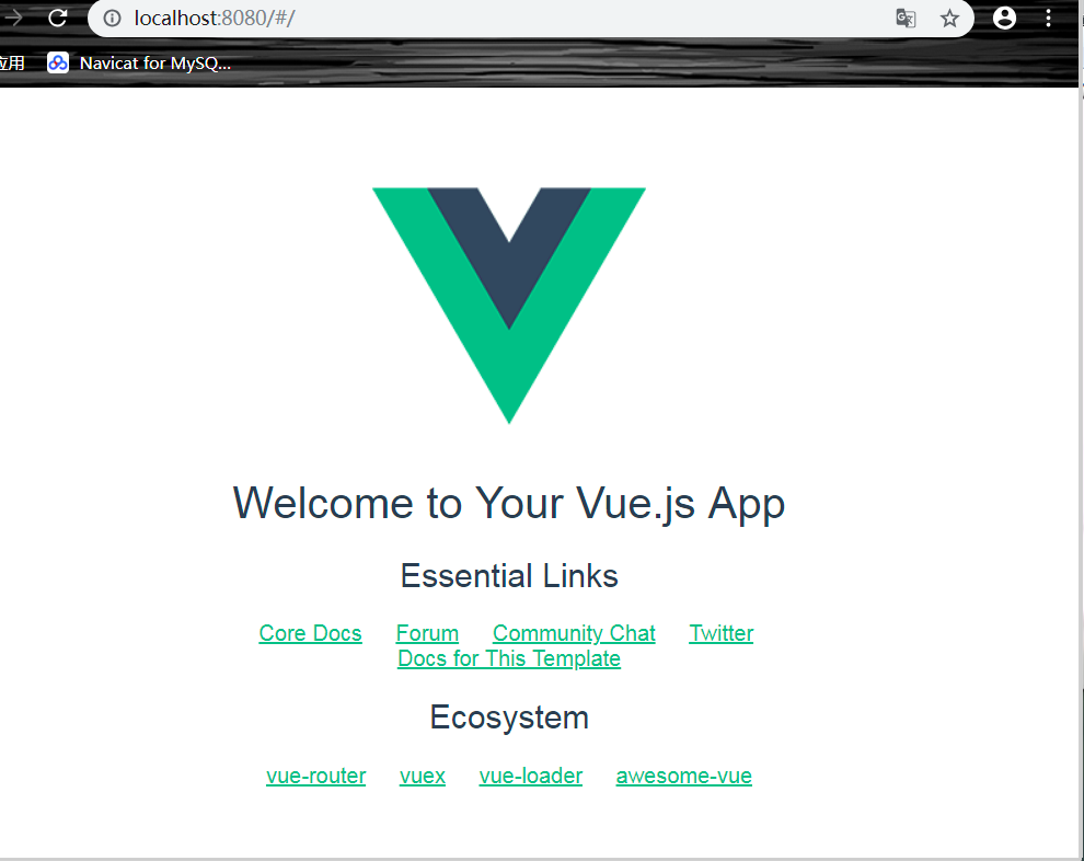 安装完成后会出现提示,让你进入项目目录然后npm run dev运行项目,运行完成在浏览器搜索栏里输入localhost:8080就会出现下面页面,基本项目就搭建好了。