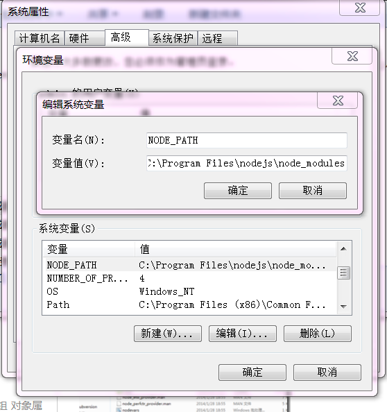变量名:NODE_PATH 变量值:C:\Program Files\nodejs\node_modules(你安装npm的路径)点击确定就完成了。