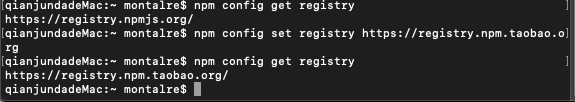 如果显示https://registry.npmjs.org设置命令npm config set registry https://registry.npm.taobao.org